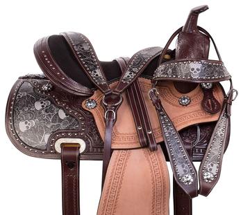 Juego de sillines ingleses de cuero Premium Barrel Racing Western Horse Tack Múltiples tamaños 14 "-18" y colores disponibles
